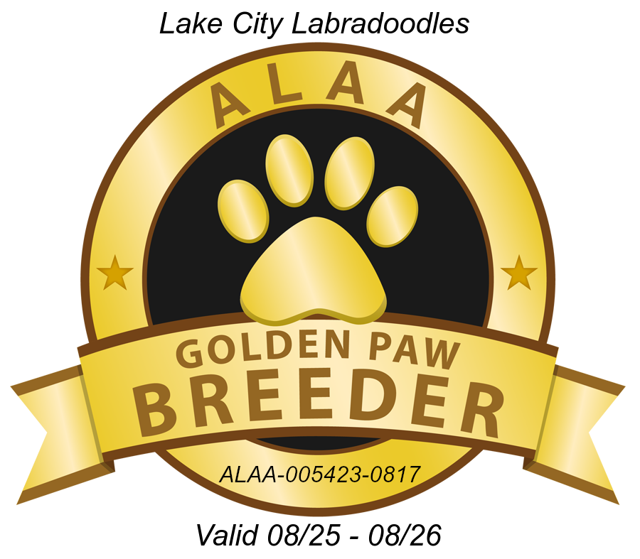 Visit the Australian Labradoodle Association of America website to read more about this exceptional breed. With our rigorous health testing process, we have earned the Gold Paw member status of the ALAA . We are serious about doing what we can to breed responsibly so we can provide families with healthy, joyful puppies. We are Lake City Labradoodles, the premier Australian Labradoodle breeder in the West and have dogs living across the United States as well as in Europe. We regularly provide puppies to clients in New York, Pennsylvania, Florida, California, Oregon, Washington, Idaho, Montana, Utah, and Nebraska, and Colorado. We would be honored to have you learn more about Lake City Labradoodles and our exceptional Australian Labradoodle puppies.